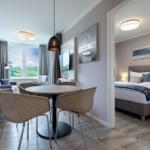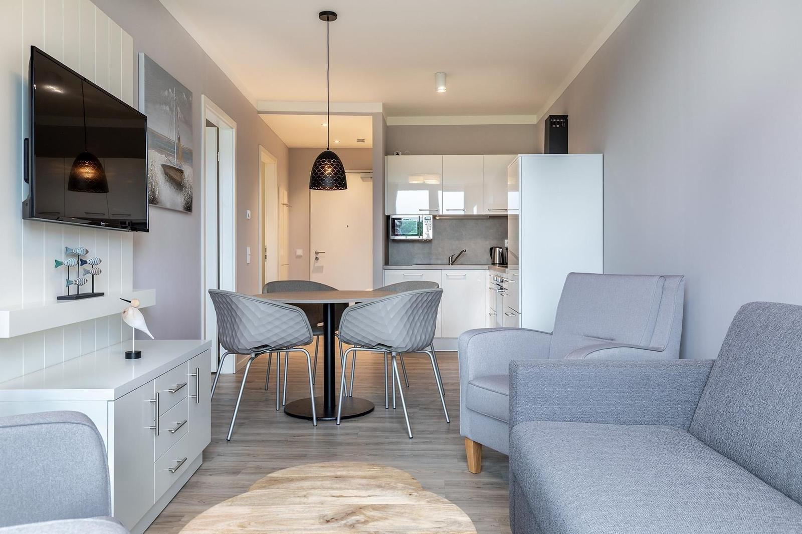 Die Unterkunft befindet sich in einer ruhigen Lage in der Nähe der Ostsee, nur wenige Gehminuten von Stränden und Einkaufsmöglichkeiten entfernt. Die idyllische Umgebung lädt zu entspannten Spaziergängen ein, während zahlreiche Attraktionen wie der Hafen von Travemünde und historische Sehenswürdigkeiten in unmittelbarer Nähe liegen. Der Bahnhof ist ebenfalls fußläufig erreichbar und ermöglicht eine bequeme Anreise. Für Gäste, die mit dem Auto anreisen, steht ein Tiefgaragenstellplatz zur Verfügung, ergänzt durch eine E-Ladestation vor der Anlage. Die überdachte Loggia bietet einen herrlichen Blick auf den angrenzenden Park und eignet sich hervorragend für entspannte Stunden. In der Ferienanlage können Gäste zudem einen großzügigen Wellnessbereich genießen, der Entspannung und Erholung verspricht.