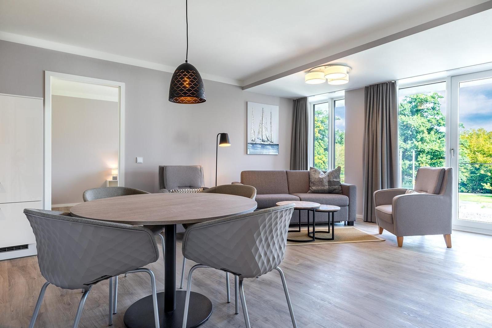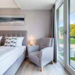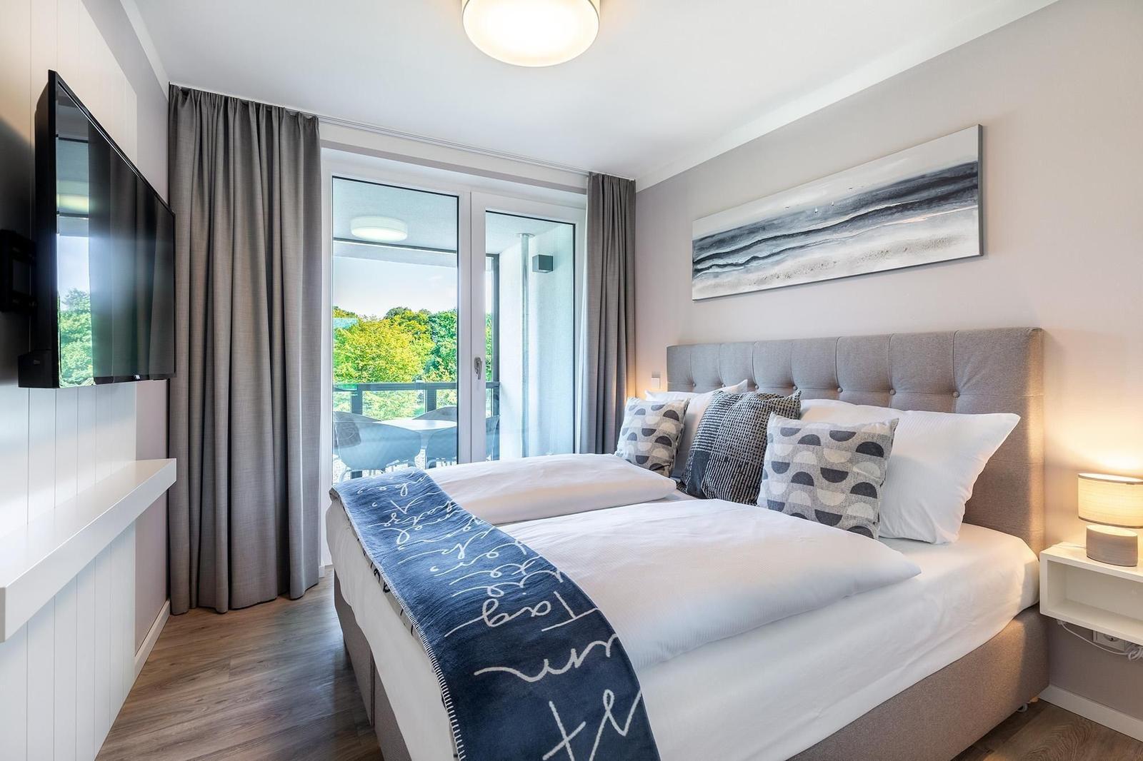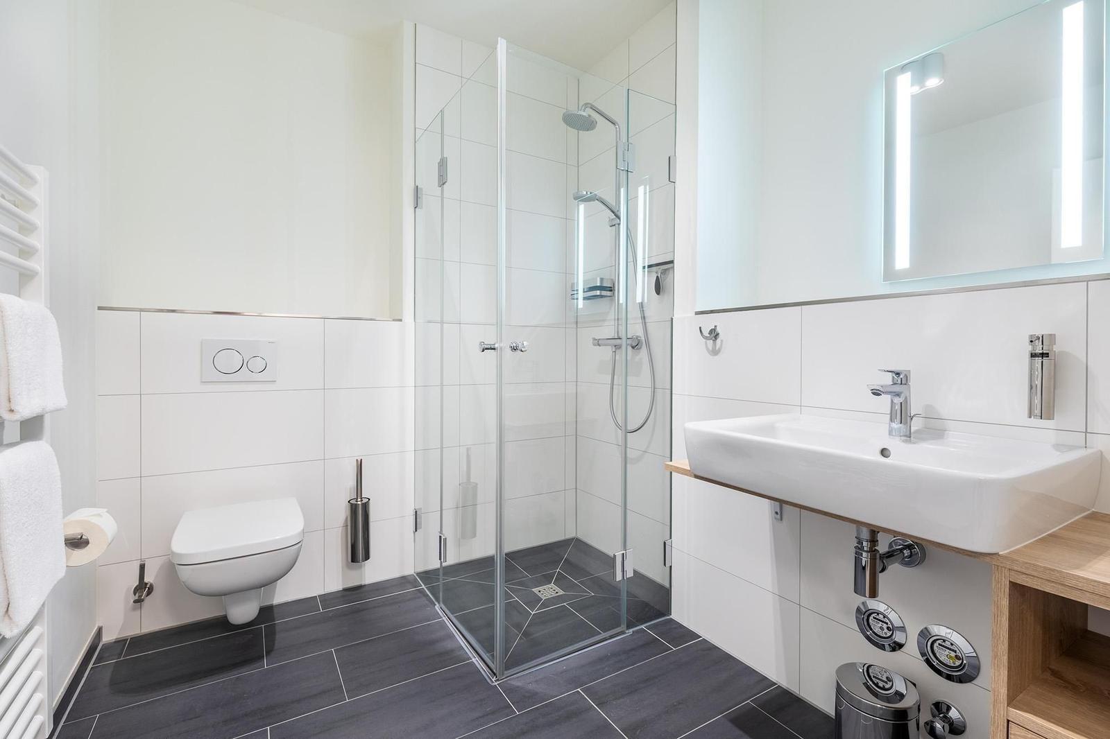 Das Apartment 1.04 im Godewindpark Travemünde überzeugt durch seinen einladenden Außenbereich. Der überdachte Balkon bietet einen herrlichen Gartenblick und lädt dazu ein, die frische Ostseeluft zu genießen. Die Ferienanlage bietet darüber hinaus einen großzügigen 260 m² großen Wellnessbereich, ideal zum Entspannen nach einem Tag am nur 300 m entfernten feinsandigen Strand. Zudem stehen den Gästen zahlreiche gemeinschaftliche Annehmlichkeiten zur Verfügung, darunter eine Sauna, ein Dampfbad und Ruhezonen. Für zusätzlichen Komfort sorgen Waschmaschinen und Trockner, die ebenfalls gemeinschaftlich nutzbar sind, sowie eine sichere Unterbringung für Fahrräder im abschließbaren Kellerraum. Ein Tiefgaragenstellplatz mit E-Ladestation rundet das Angebot ab und gewährleistet eine unkomplizierte Anreise.
