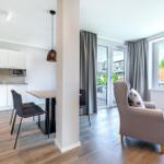 Das moderne Apartment 1.02 im Godewindpark Travemünde befindet sich nur 300 Meter vom feinsandigen Ostseestrand entfernt. Die exklusive Ferienanlage bietet zahlreiche Attraktionen in unmittelbarer Nähe. Reisende können die schöne Küstenlandschaft erkunden, während das historische Travemünde mit seinen charmanten Cafés und Geschäften leicht zu erreichen ist. Zudem stehen diverse Freizeitmöglichkeiten, wie Wassersport und Radfahren, zur Verfügung. Die Anreise gestaltet sich unkompliziert, da ein Tiefgaragenstellplatz vorhanden ist. Für E-Fahrzeuge gibt es eine E-Ladestation direkt vor der Anlage. Fahrräder können sicher im abschließbaren Keller untergebracht werden. Der 260 m² große Wellnessbereich der Anlage bietet Gästen die Möglichkeit, sich zu entspannen. Einkaufsmöglichkeiten und Restaurants sind ebenfalls schnell erreichbar und runden das Angebot ab.