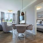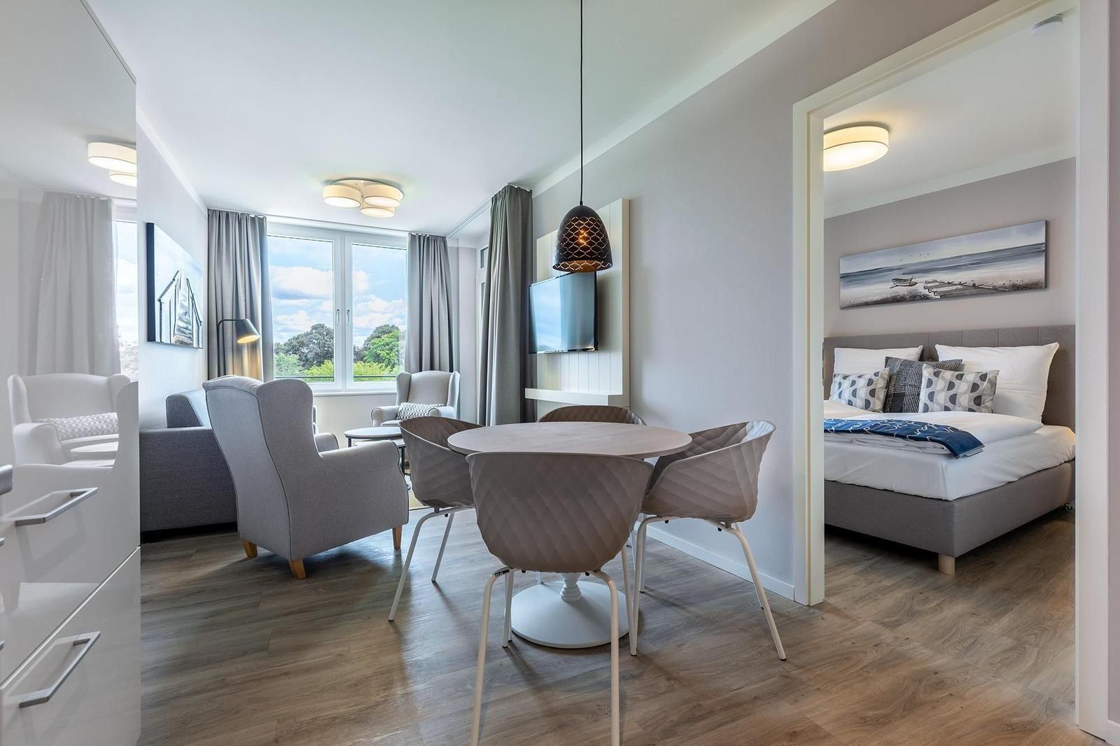 Die Lage des stilvollen Apartments im Godewindpark Travemünde zeichnet sich durch die Nähe zum feinen Sandstrand und den idyllischen Godewindpark aus, der unmittelbar vor der Unterkunft liegt. Die überdachte Loggia ermöglicht einen unverbauten Blick ins Grüne, ideal für entspannte Morgenstunden. Direkt in der Umgebung finden sich zahlreiche Freizeitmöglichkeiten, darunter die attraktiven Wellnessangebote wie Sauna und Dampfbad im hauseigenen Spa-Bereich. Für Ausflüge bieten sich der nur etwa 5 Kilometer entfernte Hafen von Travemünde sowie die malerische Altstadt von Lübeck mit ihrer historischen Altstadt an, die nur rund 20 Kilometer entfernt ist. Die Anreise zur Unterkunft gestaltet sich bequem, ein eigener Tiefgaragenstellplatz und eine E-Ladestation stehen zur Verfügung. Fahrräder können im abschließbaren Kellerraum sicher untergebracht werden.