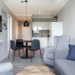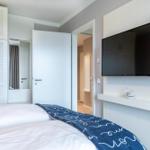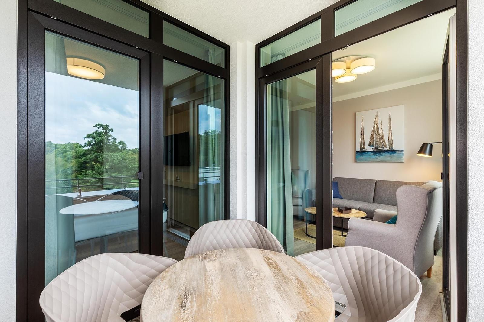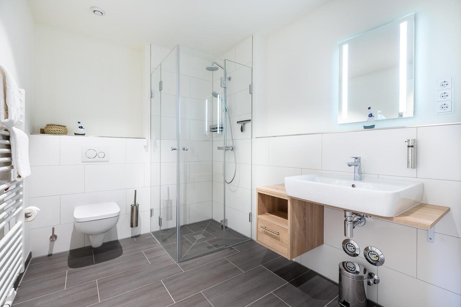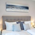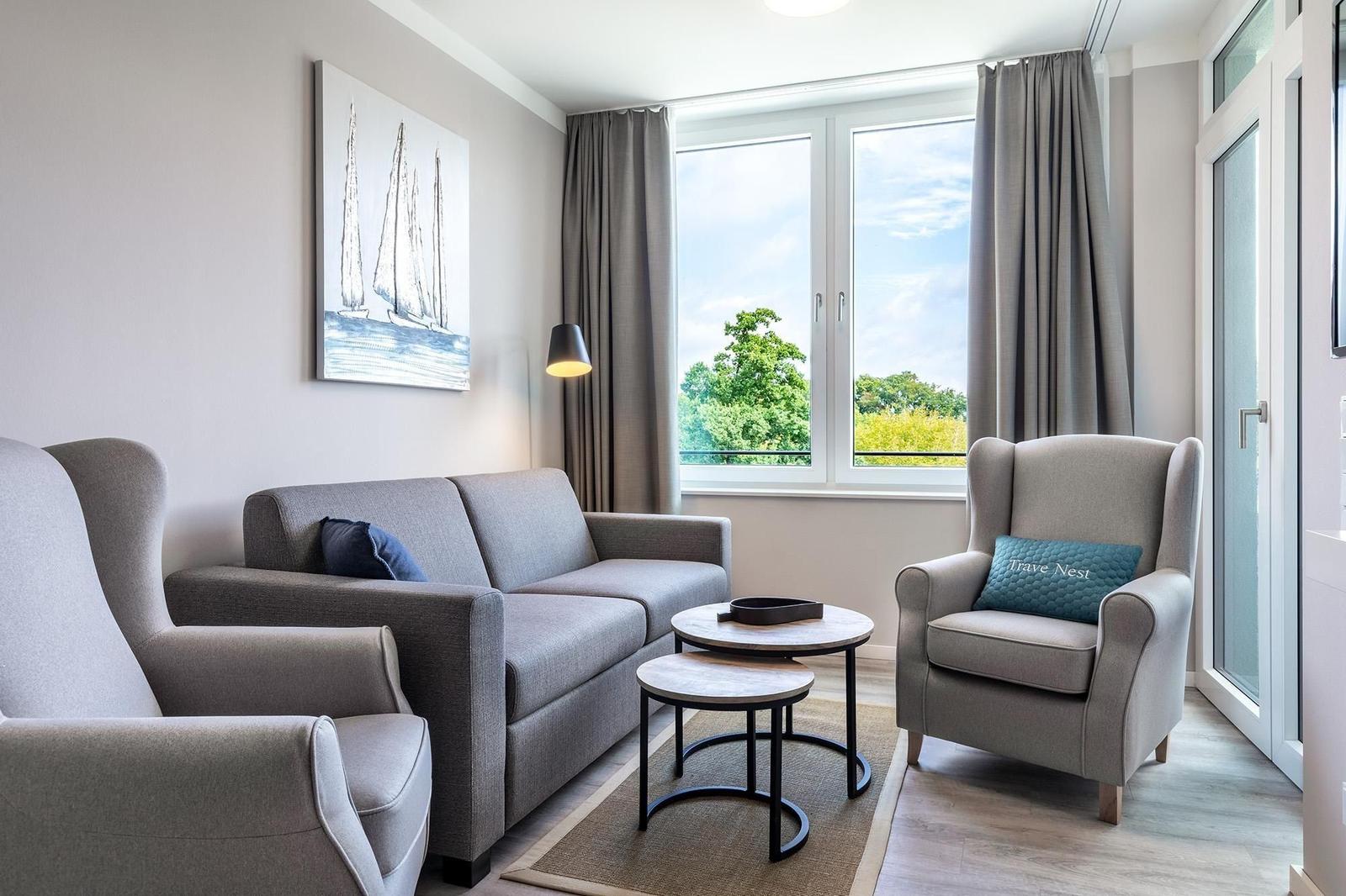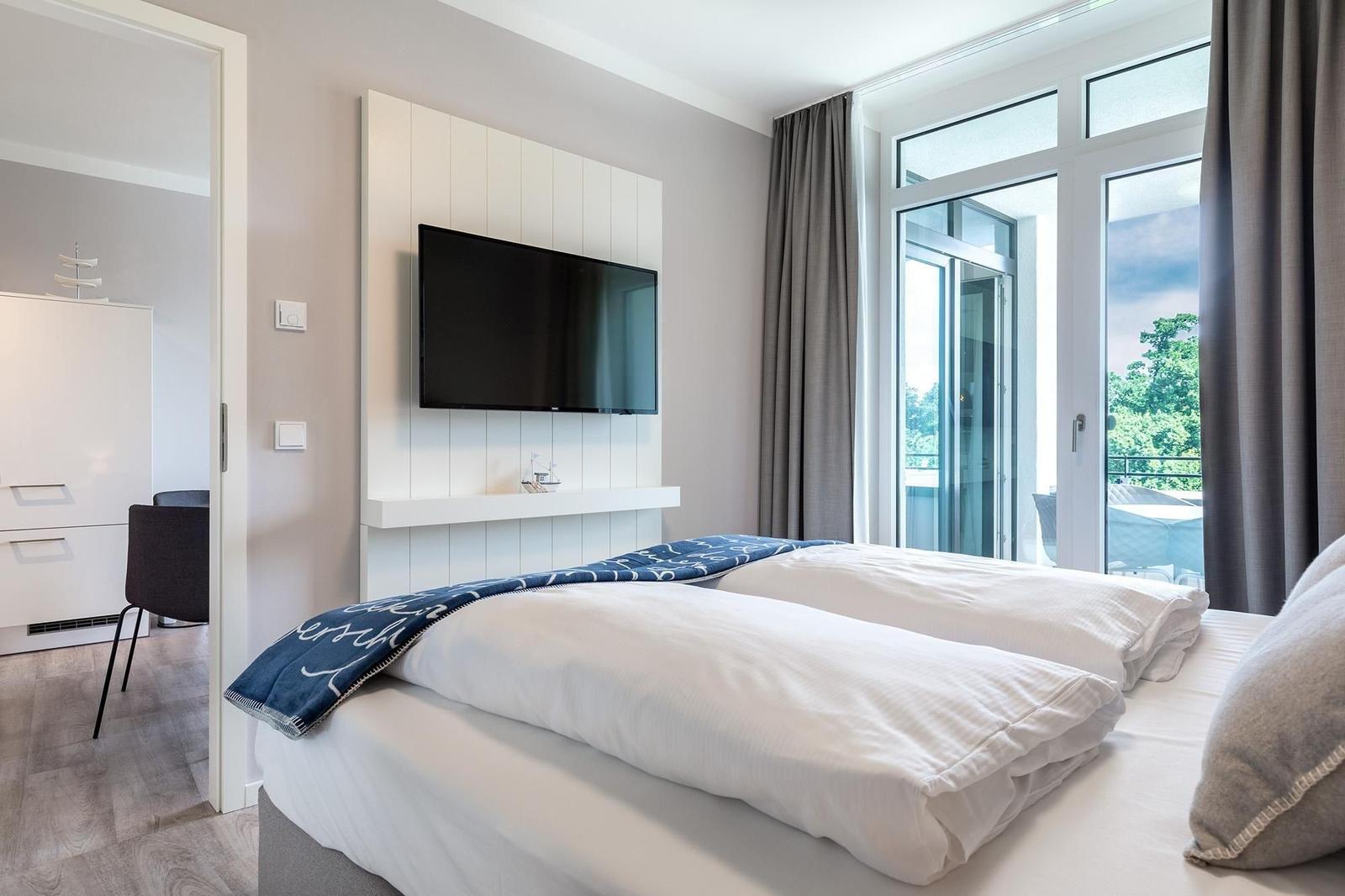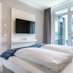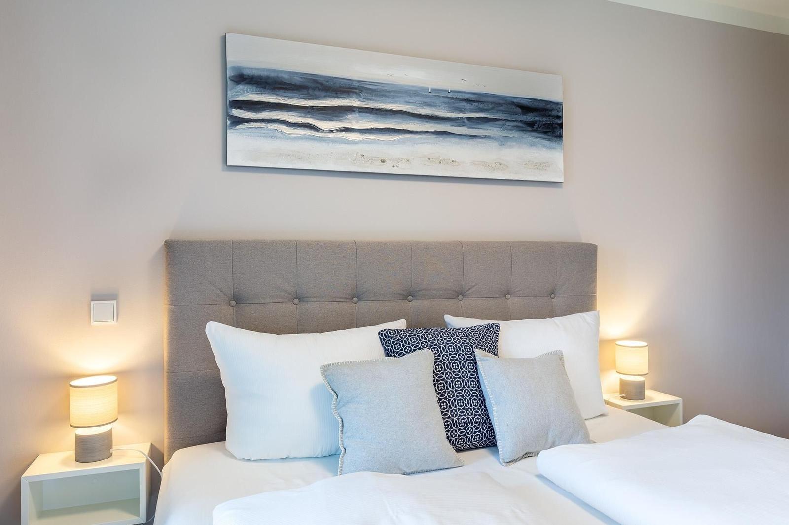 Das Godewindpark Travemünde Apartment 3.10 ist ein stilvolles 2-Zimmer-Apartment mit einer Wohnfläche von 44 m², das Platz für bis zu vier Personen bietet. Die Wohnung verfügt über eine offene, voll ausgestattete Küche mit Geschirrspüler, Kühl-Gefrierkombination, Mikrowelle und weiteren Annehmlichkeiten. Der Wohn-Essbereich ist mit einer Doppelschlafcouch und einem großen Flatscreen-TV ausgestattet. Ein modernes Boxspringbett im separaten Schlafzimmer sorgt für erholsamen Schlaf. Das Badezimmer bietet eine ebenerdige Dusche, WC und Fußbodenheizung. Hervorzuheben ist die großzügige, möblierte Loggia mit Blick auf den Godewindpark. In der Anlage steht ein 260 m² großer Wellnessbereich zur Verfügung. Gemeinschaftliche Waschmaschinen und Trockner befinden sich auf jeder Etage. Ein eigener Tiefgaragenstellplatz und eine E-Ladestation sind ebenfalls vorhanden.