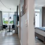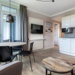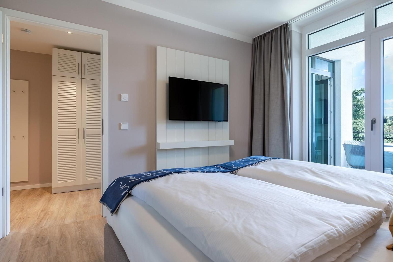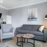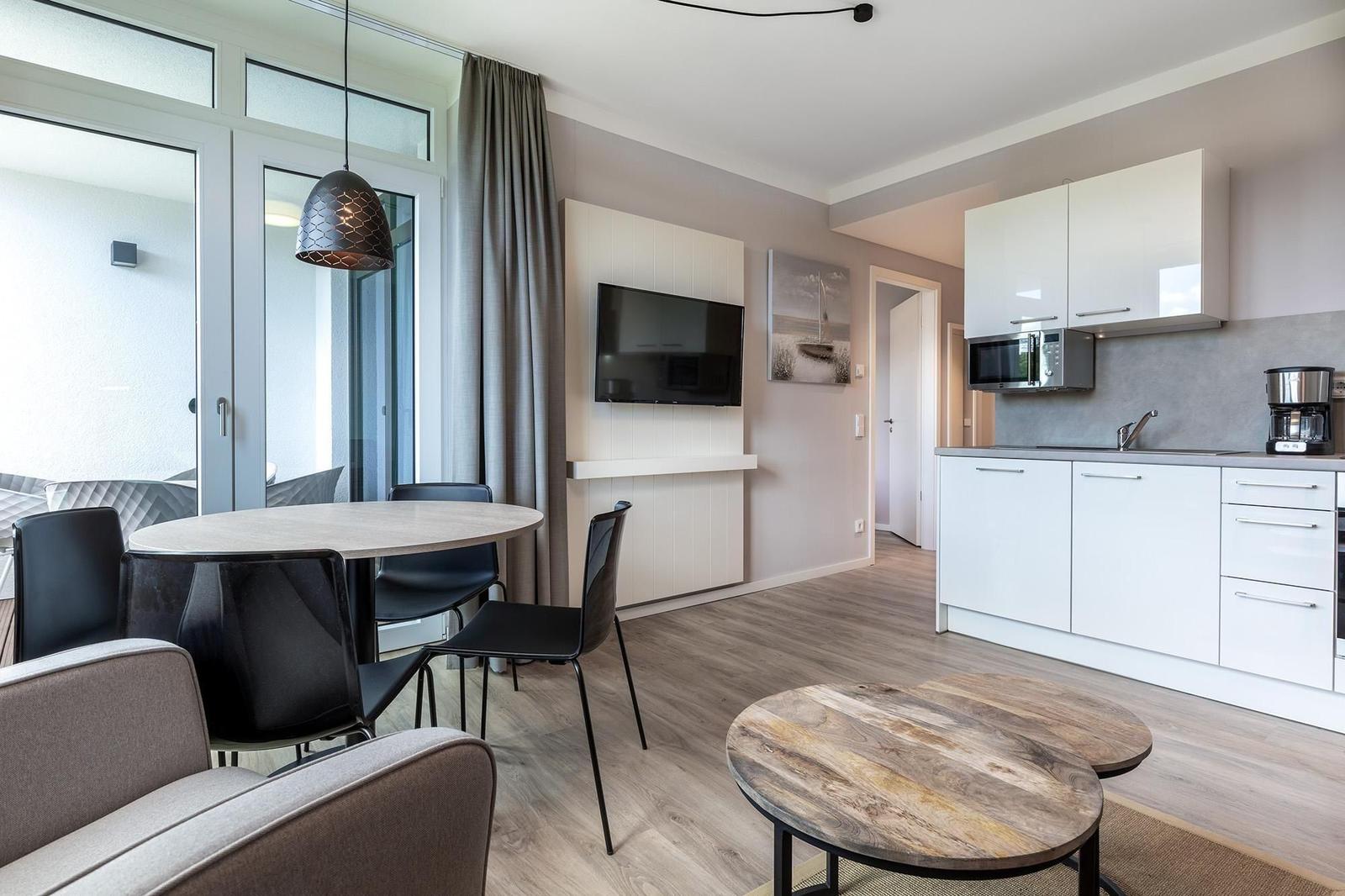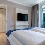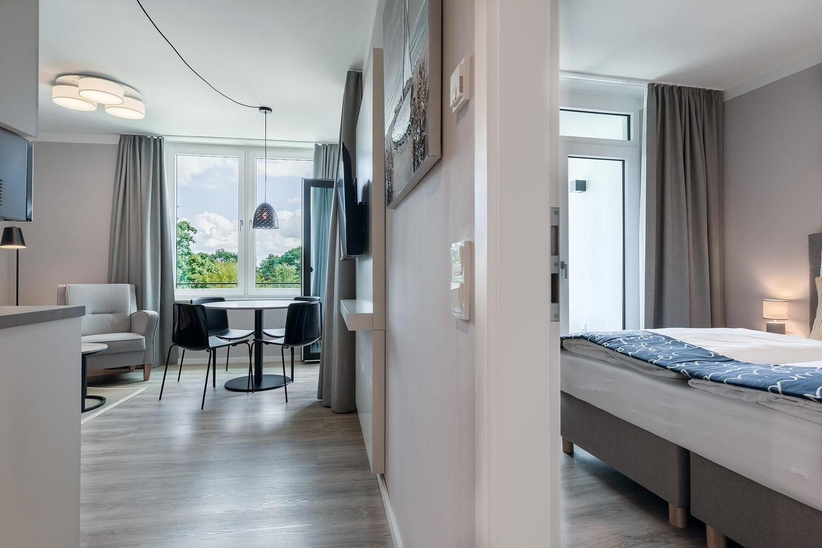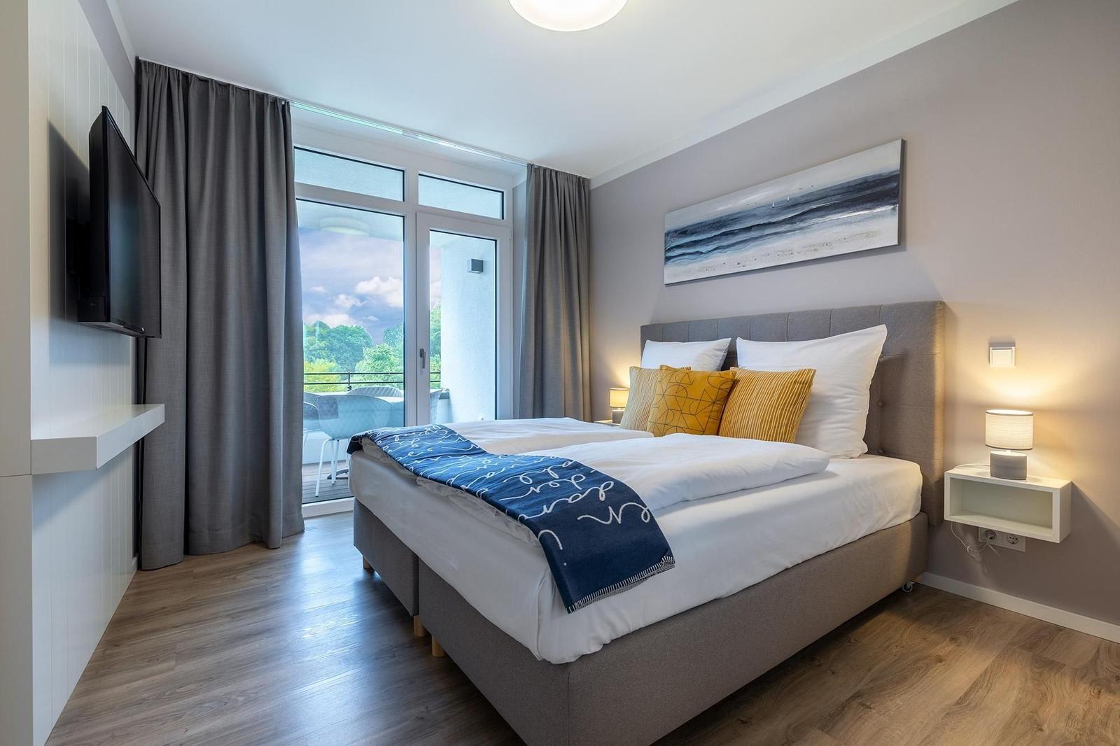 Das Godewindpark Travemünde Apartment 3.04 besticht durch seinen großzügigen, überdachten Außenbereich – die Loggia, die östlich ausgerichtet ist und einen malerischen Blick in den Godewindpark bietet. Ausgestattet mit bequemen Gartenmöbeln, lädt sie zu entspannten Stunden im Freien ein, sei es beim Frühstück oder beim Ausklang des Tages in der frischen Ostseeluft. Die Ferienwohnung bietet zudem Zugang zu einem 260 m² großen, gemeinschaftlich nutzbaren Wellnessbereich mit Sauna und Dampfbad, perfekt für erholsame Momente. Für Fahrräder steht ein abschließbarer Kellerraum zur Verfügung. Ein Tiefgaragenstellplatz mit E-Ladestation und Waschmaschinen auf jeder Etage sorgen für zusätzlichen Komfort.