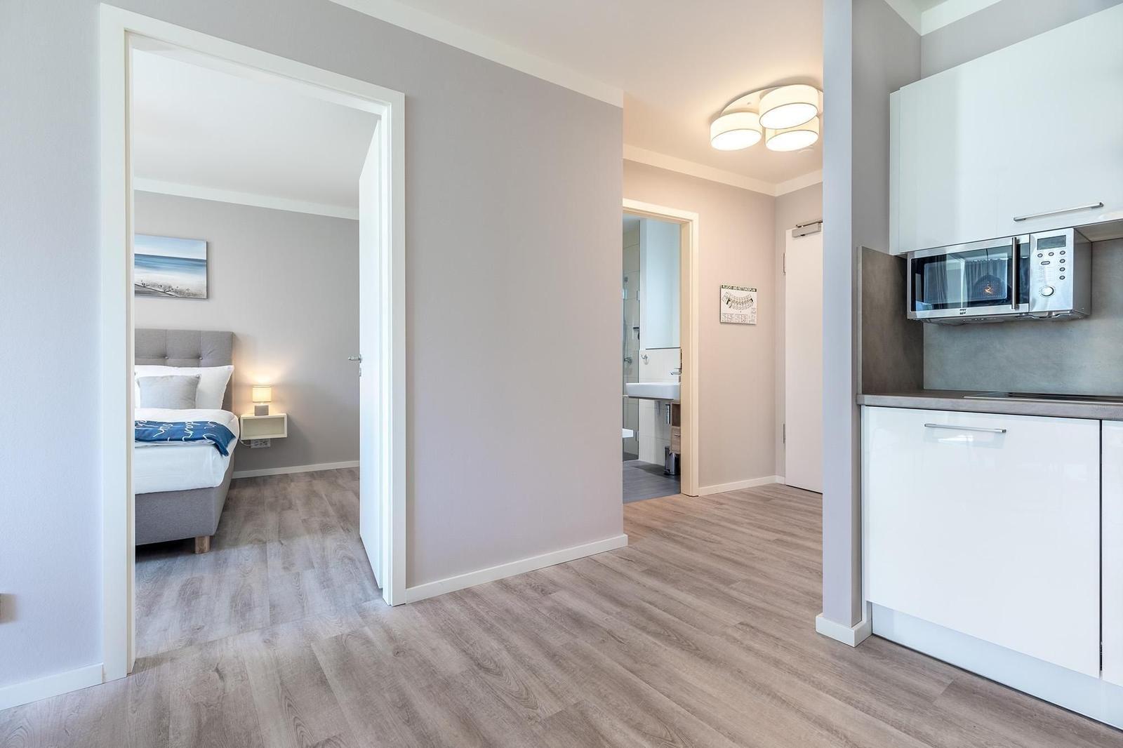 Das Ferienapartment besticht durch eine einladende West-Loggia, die zum Entspannen an der frischen Meeresluft einlädt. Der Zugang zu einem großzügigen, gemeinschaftlich nutzbaren 260 m² großen Wellnessbereich ermöglicht erholsame Stunden nach einem Tag am nur 300 m entfernten feinen Sandstrand. Die Lage bietet zudem einfache Fußwege zur Promenade, dem Piratenspielplatz und der Strandterrasse. In der Ferienanlage stehen verschiedene Gemeinschaftseinrichtungen, wie Waschmaschinen und Trockner zur Verfügung. Fahrräder können sicher im abschließbaren Kellerraum untergebracht werden. Der überdachte Balkon des modernen Apartments bietet die perfekte Möglichkeit, die Abendsonne zu genießen. Ideal für bis zu 4 Personen, wird hier der Aufenthalt an der Ostseeküste zu einem unvergesslichen Erlebnis.