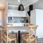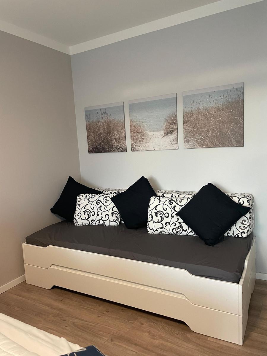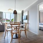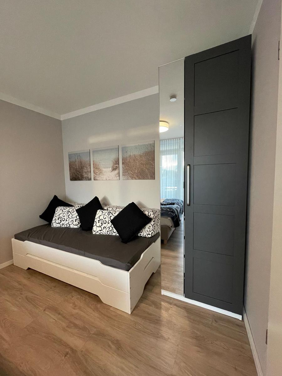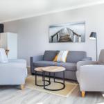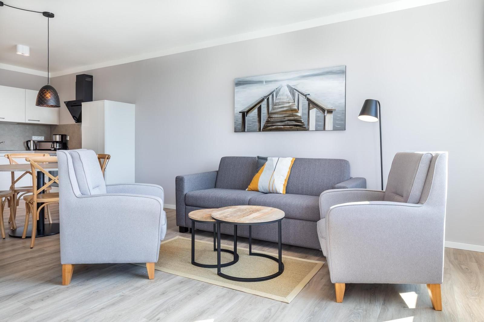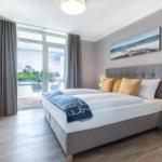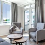 Das Ferienapartment überzeugt mit einem stilvollen Außenbereich – der überdachten Loggia in sonniger Süd-West-Lage. Hier kann die wohltuende Ostseeluft bis in die Abendstunden genossen werden, sei es beim Frühstück im Freien oder beim entspannten Ausklang des Tages mit einem Glas Wein. Die Loggia, ausgestattet mit gemütlichen Gartenmöbeln, ist sowohl vom Wohnbereich als auch vom Schlafzimmer zugänglich und erweitert den Wohnraum ins Freie. Darüber hinaus bietet die Ferienanlage einen 260 m² großen Wellnessbereich mit Zugang zu Sauna, Dampfbad und Ruheraum. Auf dem Gelände stehen ebenfalls abschließbare Kellerabteile für Fahrräder sowie Waschmaschinen und Trockner zur gemeinschaftlichen Nutzung zur Verfügung. Die Nähe zur Ostsee und dem Sandstrand, die in wenigen Gehminuten zu erreichen sind, rundet das Angebot ab und bietet ideale Voraussetzungen für einen erholsamen Urlaub.
