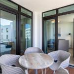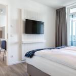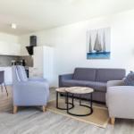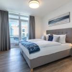 Das 49 m² große, hundefreundliche 2-Zimmer-Apartment in Travemünde bietet Platz für bis zu vier Personen und überzeugt durch eine moderne Ausstattung. Die stilvolle, offene Küche ist mit einem Geschirrspüler, einem Kühlschrank mit Gefrierfach, einer Mikrowelle, einer Kaffeemaschine, einem Toaster, einem Wasserkocher sowie einem Glaskeramikkochfeld und einem Backofen ausgestattet. Der Wohn-Essbereich umfasst eine gemütliche Doppelschlafcouch und einen großen SMART-TV. Das separate Schlafzimmer mit einem hochwertigen Boxspringbett verfügt ebenfalls über einen SMART-TV. Das Badezimmer ist mit einer ebenerdigen Dusche und Fußbodenheizung ausgestattet. Die überdachte Loggia lädt zum Verweilen ein. Zur gemeinschaftlichen Nutzung stehen eine Sauna, ein Dampfbad sowie Waschmaschinen und Trockner auf jeder Etage zur Verfügung. Ein Tiefgaragenstellplatz und eine E-Ladestation sind ebenfalls vorhanden.