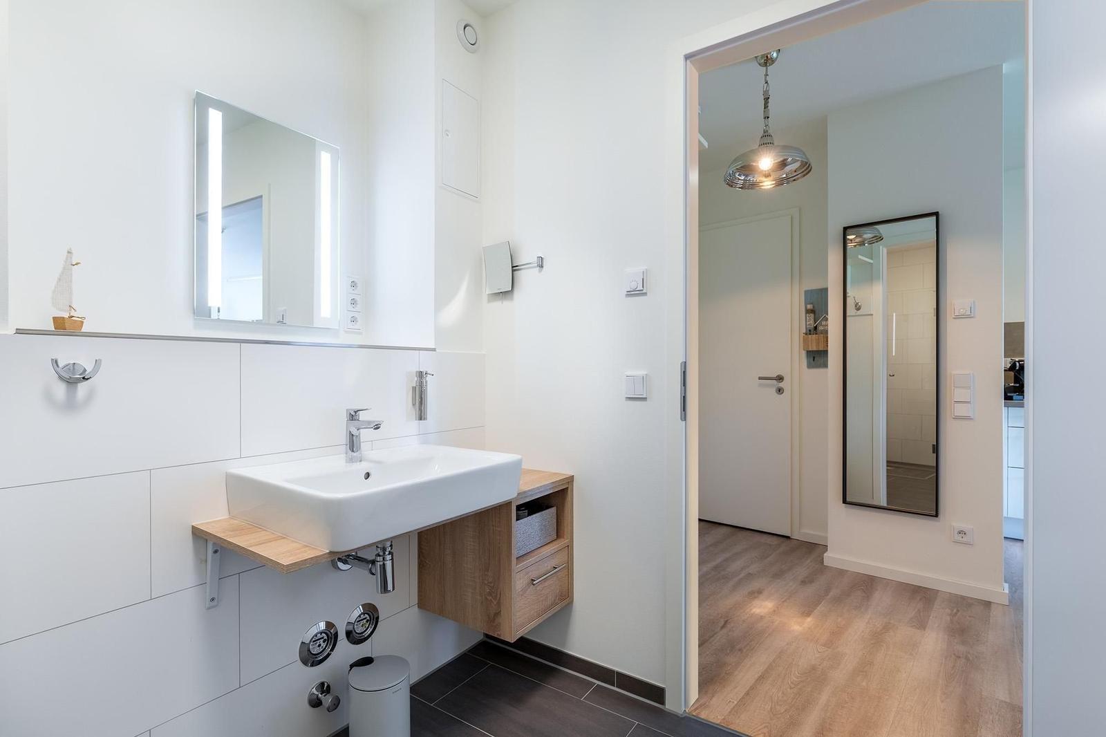 Die Unterkunft befindet sich in einer bevorzugten Lage, nur etwa 300 Meter vom feinen Sandstrand entfernt und etwa 320 Meter vom Meer. Die Umgebung bietet zahlreiche Freizeitmöglichkeiten, darunter den Godewindpark, der direkt von der Loggia des Apartments aus zu sehen ist. Gäste können aufregende Strandtage verbringen, entspannte Spaziergänge entlang der Küste unternehmen oder die nahegelegenen Attraktionen erkunden. Die Anreise gestaltet sich unkompliziert, da ein eigener Tiefgaragenstellplatz sowie eine E-Ladestation an der Anlage zur Verfügung stehen. Fahrräder können sicher im abschließbaren Kellerraum untergebracht werden, während Waschmaschinen und Trockner auf jeder Etage für zusätzlichen Komfort sorgen. Ideal für einen ruhigen Aufenthalt mit Zugang zu Wellness und Erholung.